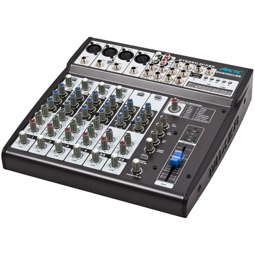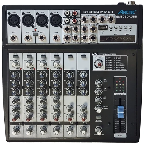 SM802DUSB - это компактный микшер со всеми необходимыми входами, выходами, эквалайзером и встроенным USB медиаплеером. Этот малыш прекрасно подойдет для небольших сольных концертов, караоке, проведения презентаций, ушного мониторинга во время выступлений или для домашней/мультимедийной студии.