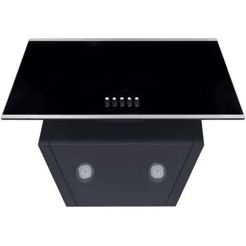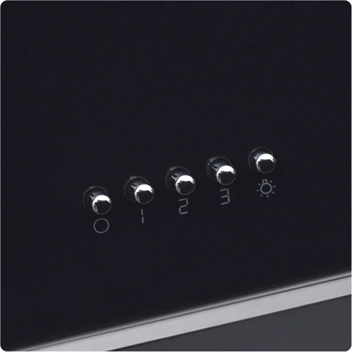 Оборудована механической панелью управления, на которой размещаются кнопки включения прибора, включение освещения, а также переключение скоростей работы вытяжки. В общей сложности вытяжка имеет 3 скорости работы. Выбор каждой из низ напрямую зависит от количества испарений, возникающих в процессе приготовления пищи.