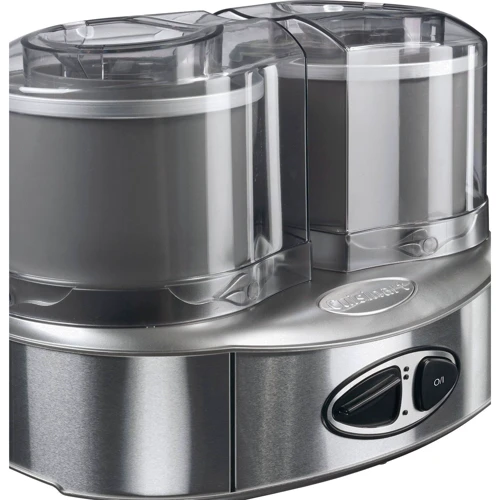Мороженица электрическая фирмы Cuisinart - этот удобный практичный аппарат, с которым можно одновременно приготовить 2 типа мороженого, или щербета, или даже йогурт, и порадовать семью вкусным десертом. Две чаши по 1 литру могут работать одновременно, либо по одной. Добавлять продукты можно прямо во время готовки.