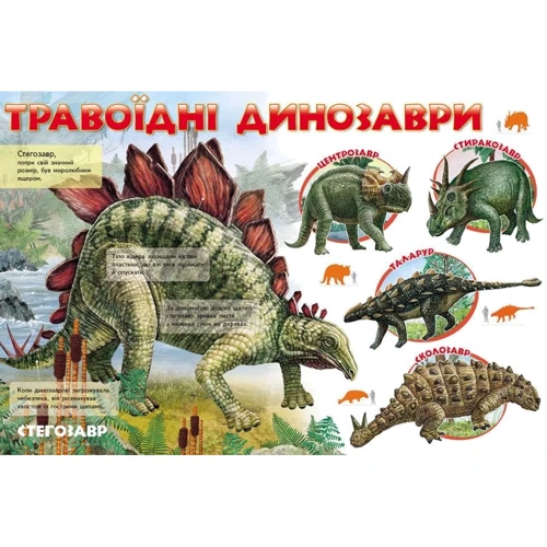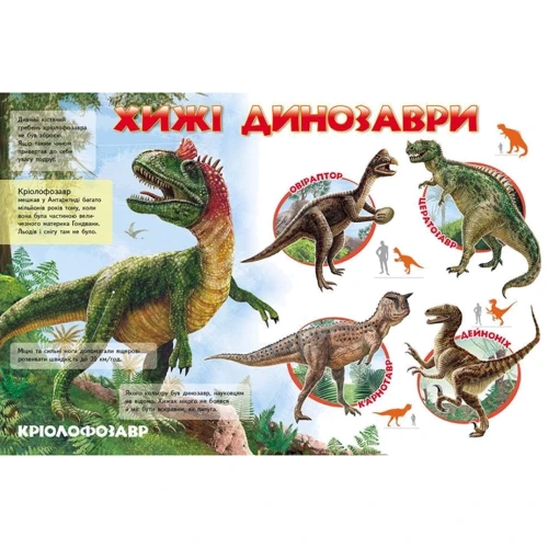 Об’ємне, з щільними сторінками і яскравими кольоровими малюнками — наше видання стане ідеальним подарунком вашому малюкові. Гортаючи книгу про динозаврів, дитина дізнається: