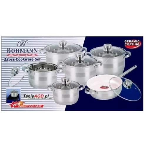 # Посуда BOHMANN поможет создавать вкусные и полезные кулинарные шедевры изо дня в день. Продуманный эргономичный дизайн и высококачественная хромоникелевая сталь 18/10 обеспечивают посуде BOHMANN долговечность, практичность и экономичность. Неважно, что Вы в ней делаете – варите, тушите, жарите или готовите на пару – тройное капсульное дно посуды обеспечит равномерное распределение тепла, а также избавит Вас от проблемы пригоревшей пищи. Одним словом, каждый ценитель вкусной и здоровой пищи найдет среди широкого ассортимента посуды BOHMANN все, что необходимо для приготовления самых аппетитных и самых изысканных кулинарных творений.