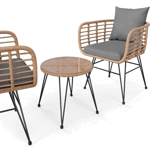 В комплекте со стульями и журнальным столиком вы также найдете удобные подушки, которые идеально подходят практически к любому оформлению сада или террасы, так и в интерьере, например в гостиной.