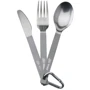 Легкий титановый столовый набор, в который входит вилка, ложка и нож. Набор компактно складывается в нейлоновый чехол.