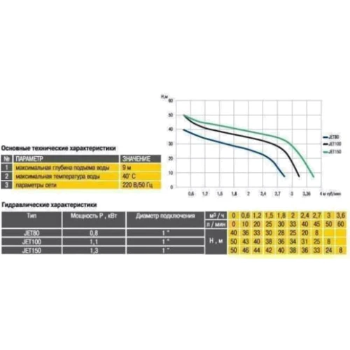Глубина погружения насоса в воду, м | 9 |