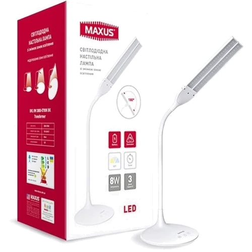 Настольная лампа MAXUS DKL Transformer 8W (1-MAX-DKL-001-05) в элегантном белом корпусе – это «умный» Led-светильник, отвечающий современным требованиям эргономики и функциональности.