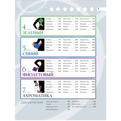 Подбирая гардероб в правильных для вас цветах - для работы, вечеринки, важного свидания, собеседования или обеда с друзьями - вы будете уверены, что одеты наилучшим образом. Пройдите тест, изучите характеристики цвета и смело отправляйтесь в увлекательное разноцветное путешествие - ищите новые смелые сочетания, экспериментируйте, развивайте свой вкус! Все, что для этого нужно, вы уже держите в своих руках. И знайте: это только начало. Чем глубже вы будете узнавать тайны цвета, тем интереснее и ярче будет ваша жизнь. Приятный бонус: к книге прилагается круг цветовых сочетаний в одежде.