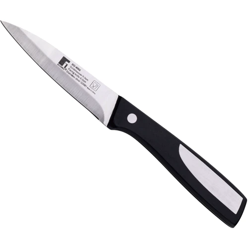 Нож для чистки овощей Bergner Resa, 9 см (BG-4066) изготовлен из высококачественной нержавеющей стали. Имеет повышенную прочность и подходит для частого использования. Эргономичная ручка с металлическими вставками обеспечивает комфортное использование. Лезвие имеет двустороннюю симметричную заточку по всей длине режущей кромки, что обеспечивает легкую нарезку и обработку. Изогнутая ручка с упором под пальцы идеально подходит для чистки овощей.