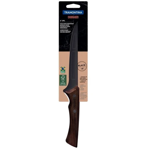 Нож Tramontina Churrasco Black изготовлен из нержавеющей стали, лезвие устойчиво к коррозии, легко затачивается, при этом надолго сохраняя идеальную остроту. Гладкая режущая кромка. Эргономичная ручка удобной формы. Нож не только украсит вашу кухню но и очень практичный в использовании.