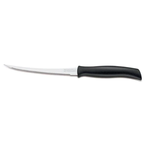 Нож для томатов Tramontina Athus 23088/105 имеет лезвие со специальной заточкой, благодаря которой очень легко и удобно нарезать мягкие и (или) сочные овощи, фрукты на тонкие ломтики или кубики (например, помидор, огурец, лук и т.д.)