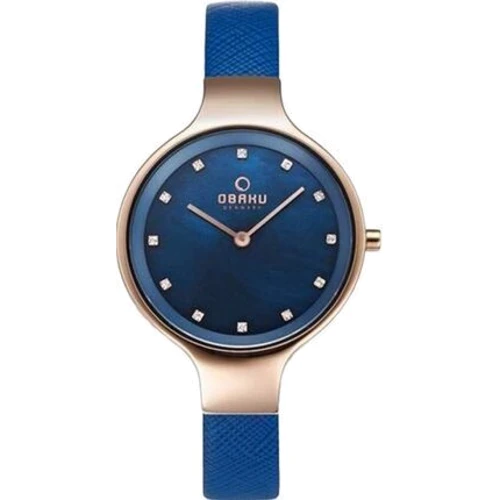 Дизайнерские женские часы от Датского производителя OBAKU имеют оригинальный дизайн и надёжный кварцевый механизм. Корпус изготовлен из нержавеющей стали с PVD покрытием золотого цвета. Циферблат синего цвета украшен кристаллами Swarovski. Стекло минеральное, устойчивое к возникновению царапин. Синий ремешок изготовлен из натуральной кожи и имеет классическую застежку – пряжку. Водонепроницаемость – 30 м сможет защитить Ваши часики от дождя или случайного попадания воды.
