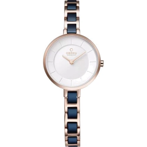 Дизайнерские женские часики от Датского производителя Obaku имеют надёжный кварцевый механизм. Корпус и браслет изготовлены из нержавеющей стали с частичным PVD покрытием синего цвета и цвета розового золота. На белом циферблате расположены индексы. Стекло минеральное, устойчивое к возникновению царапин. Водонепроницаемость – 30 м сможет защитить Ваши часики от дождя или случайного попадания воды.