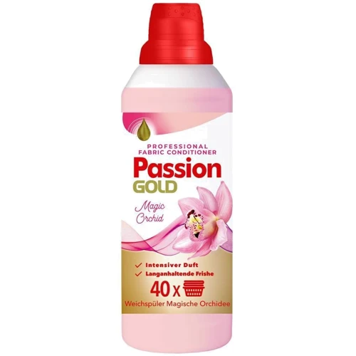 Парфюмированный ополаскиватель для стирки Passion Gold имеет свежий аромат Magic Orchid делает ткани мягкими, гладкими и приятными на ощупь.