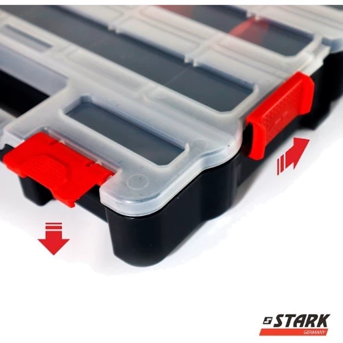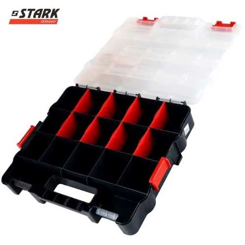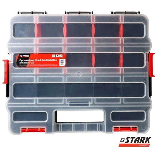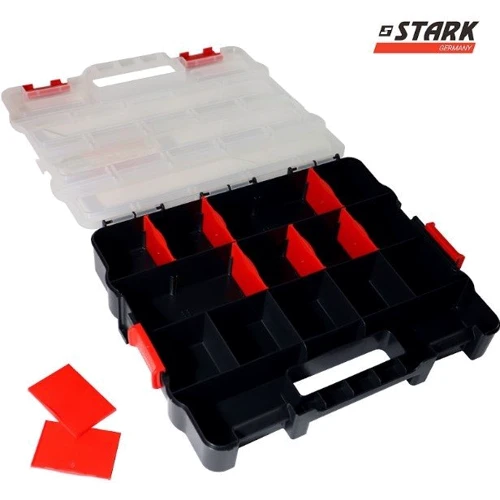 Пластиковый органайзер Stark со съемными лотками! Если Вы ищете эффективный и удобный способ хранения мелких предметов, таких как гайки, болты, кнопки или другие мелочи, наш органайзер - идеальный выбор для Вас. Он выполнен из качественного пластика, что гарантирует долговечность.