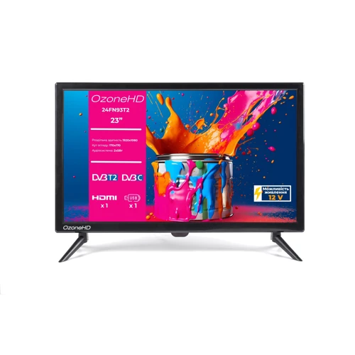 OzoneHD 24FN93T2 потребляет до 36 Вт электроэнергии, что делает его экономичным в использовании. Как и другие модели бренда, есть возможность питания от стабилизированного постоянного тока с напряжением 12В, что делает телевизор идеальным вариантом для использования в транспорте или в условиях, где доступ к стандартной сети ограничен, также телевизор можно подключать к адаптеру питания постоянного тока 220В - 12В, что обеспечивает гибкость в использовании.