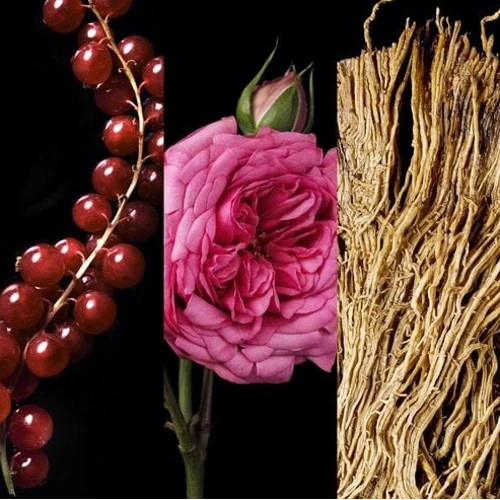 Ароматическое путешествие начинается с сочной красной смородины и экзотического личи.