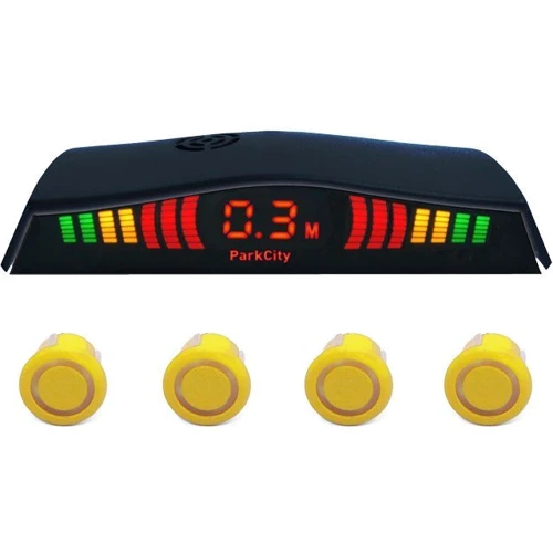 Модель отличается нестандартным стильным дизайном индикатора, который органично впишется в интерьер многих автомобилей. Прибор сигнализирует о приближении препятствия звуком, цветовой и цифровой индикацией. Шкала состоит из семи сегментов трех цветов, цифрами отображается расстояние от 1,7 до 0,3 м с шагом 0,1 м. Сегменты шкалы выполнены составными, что улучшает восприятие информации и эффектно смотрится. В комплекте 4 датчика диаметром 18 мм.