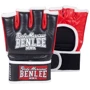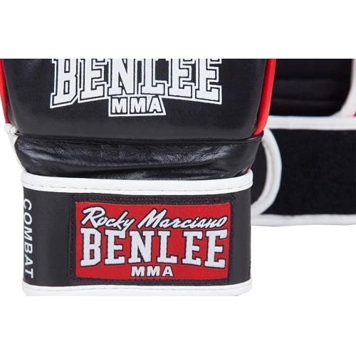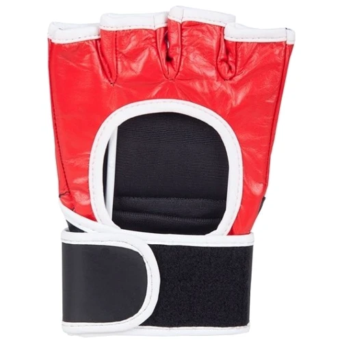 Покрой перчаток с открытыми пальцами и ладонью позволяет с легкостью проводить захваты и удушающие приемы, а край контактирует с пальцами и ладонью прошит мягкой окантовкой для предотвращения натирания. Фиксация экипировки на руке обеспечивается широким ремешком на липучке шириной 6 см, который охватывает и удерживает манжет, исключая соскальзывание во время интенсивных тренировок.