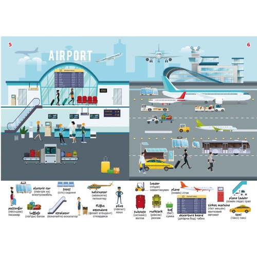 З книгою-віммельбухом із багаторазовими наліпками читання перетворитися в захоплюючу й пізнавальну гру. Розглядаючи картинки, малюк зможе не тільки дізнатися багато нового про навколишній світ, а й створити свій власний: спочатку подумки, а потім - на папері, використовуючи багаторазові наліпки. Яскраві ілюстрації допоможуть юному фантазеру вигадувати цікаві історії та легко запам'ятати, як пишуться і вимовляються англійські слова.
