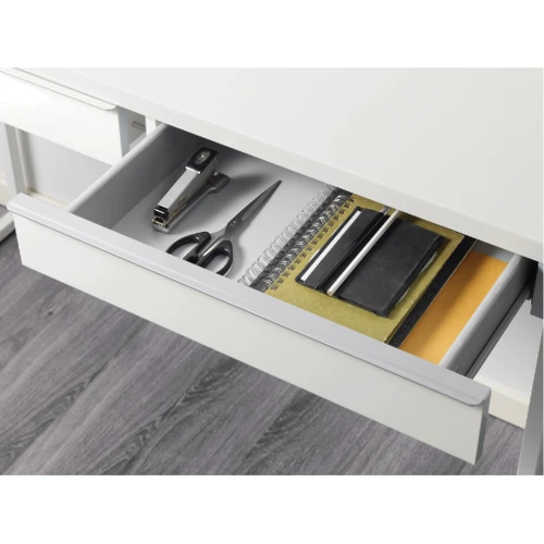 Стильный письменный стол с простым дизайном и тонкими линиями. Компактный и удобный для размещения даже в центре комнаты благодаря задней стенке. Два практичных ящика для вещей, которые вы хотите держать под рукой.