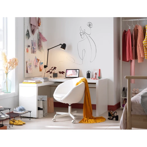 Простой дизайн, одинаково красивый с любой стороны - стол может стоять в комнате отдельно или у стены, а кабели хорошо спрятаны внутри. Установите дополнительную выдвижную рабочую поверхность с левой или правой стороны.