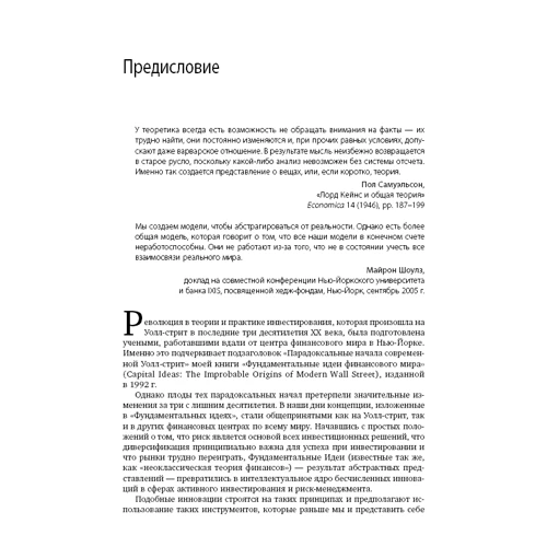 Работы Гарри Марковица и Юджина Файма, революционные взгляды Франко Модильяни и Мертона Миллера, теории Фишера Блэка, Майрона Шоулза и Роберта Мертона появились еще в 1950-1970-е гг., однако долго не получали признания со стороны практиков. В наше время без них трудно представить мир финансов. Они кардинальным образом изменили характер финансовых рынков, инвестиционные стратегии, привели к появлению новых финансовых инструментов. Автор анализирует процесс развития фундаментальных идей финансовой теории и их влияние на практику современного инвестиционного мира.