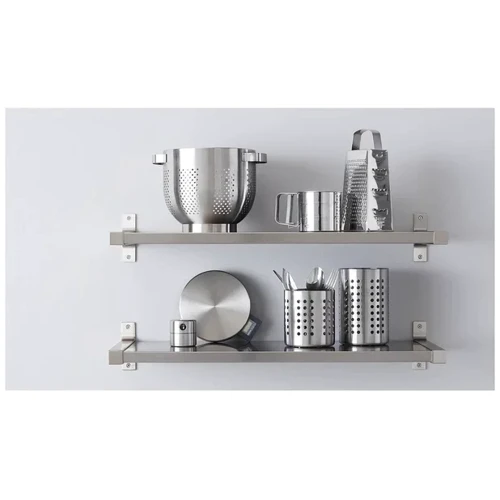 Эта полка ІКЕА ORDNING из нержавеющей стали подходит для влажной кухонной утвари у раковины, а также для чистой и сухой посуды у плиты.