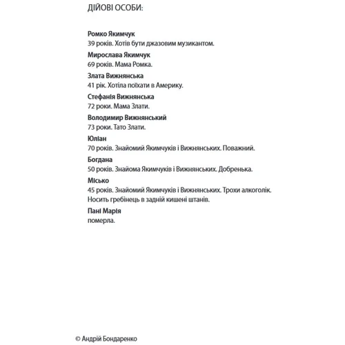 П’єси умовно можна поділити на три групи: для дітей і підлітків, для дорослої аудиторії, п’єси-інсценівки та адаптації. Ці драматургічні тексти розраховані для різної за віком аудиторії, відрізняються за тематикою і жанровою спрямованістю, однак всіх їх об’єднує акцент на актуальних проблемах, пошук нових драматургічних форм та засобів комунікації з потенційним глядачем. Частина п'єс вже має успішну історію постановок у театрах України. Збірка буде цікавою як профільним фахівцям, так і широкому колу читачів.