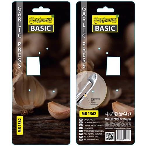 Пресс для чеснока изготовлен из прочной нержавеющей стали, которая отвечает всем мировым требования качества. Этот материал не впитывает запахи и не изменяет вкус продуктов. Конструкция пресса очень удобная и легко очищается от грязи и остатков пищи. Прибор надёжный благодаря чему Вы долго и с удовольствием будете пользоваться им. Эргономичные ручки имеют приятные тактильные качества. Компактный и современный дизайн также отличают этот пресс от других моделей.