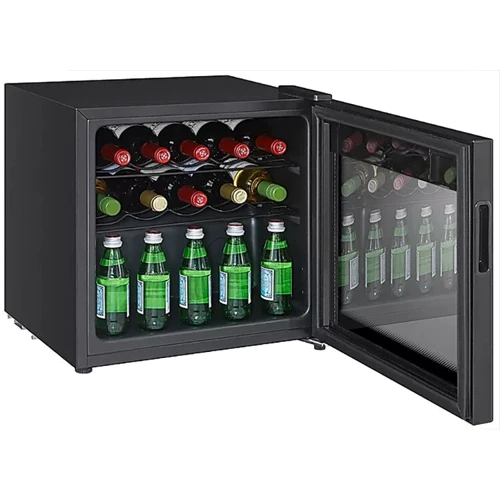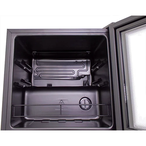 # Двери с двойным стеклом Дверца дверей представленного винного шкафа спроектирована с учетом того, что в нем хранится продукт, на который разрушительное влияние оказывает солнечный свет и отдельные виды излучения. Именно поэтому передняя часть двери имеет двойной стеклопакет.