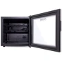 # Вместительность модели Представленный шкаф рассчитан на 14 бутылок стандартного объема в размере 0.7 л. При этом вы можете достаточно мобильно менять внутренние полочки, т.к. они сделаны таким образом, чтобы быть подвижными и приспособленными к изменениям. Держатели на каждой из полок имеют углубления, в которых каждая бутылка лежит строго на своем месте, не меняя его – перемещение исключено.