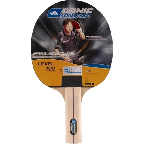 Ракетка для настольного тенниса Donic Appelgren Level 100 рекомендована для начинающих игроков, идеально подходит для первых тренировок. 5-ти слойное основание, накладка без губки с шипами наружу.