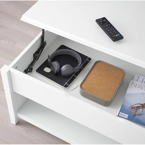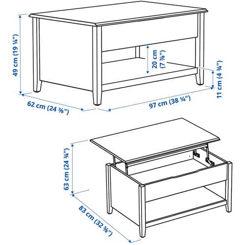 Откройте для себя новые возможности для вашей гостиной. Столешница регулируемого журнального столика VITTERYD может быть установлена на двух разных высотах. Столик также имеет скрытое пространство для хранения с полкой, которую можно дополнить контейнерами.
