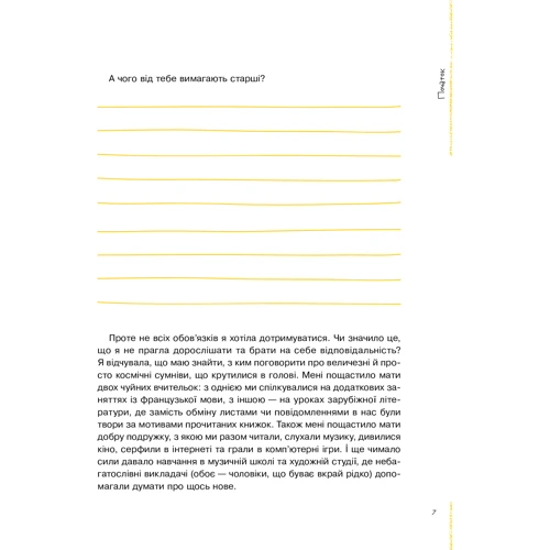 У книжках про дорослішання для дівчат бракує реальних життєвих порад: як прийняти своє тіло, домовитися про що завгодно з батьками, вибрати професію, стати впевненішою у власних силах. Книжка, яку ти тримаєш, виправить таку прикрість.