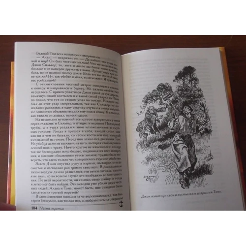 Шедевр мировой литературы, небольшой по объему и легкий для восприятия, любим не одним поколением мальчишек. Персонажи Стивенсона запоминаются надолго, если не на всю жизнь: Джим Гаукинс, доктор Лайвесей, слепой Пью, Черный Пес, Бен Гунн и другие. Роман подарил нам, быть может, самого оба- ятельного мерзавца среди литературных героев - долговязого одноногого Джона Сильвера. Сам Стивенсон отзывался о своем главном пирате следующим образом: "Я немало гордился Джоном Сильвером, мне и поныне внушает своеобразное восхищение этот велеречивый и опасный авантюрист"…