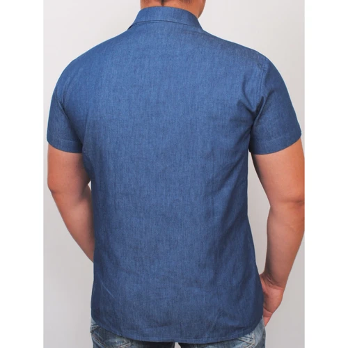 Рубашка с коротким рукавом ровного кроя из джинсовой ткани. Ткань не тянется.