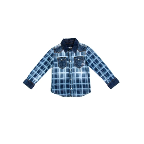 Модная рубашка для мальчиков с вставками и рыжей строчкой.