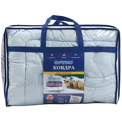 Шерстяное одеяло Руно – очень теплое одеяло. Наполнителем служит овечья шерсть, что делает одеяло легким и одновременно теплым. К другим преимуществам шерстяных одеял можно отнести гигроскопичность, натуральность, экологичность и долговечность.