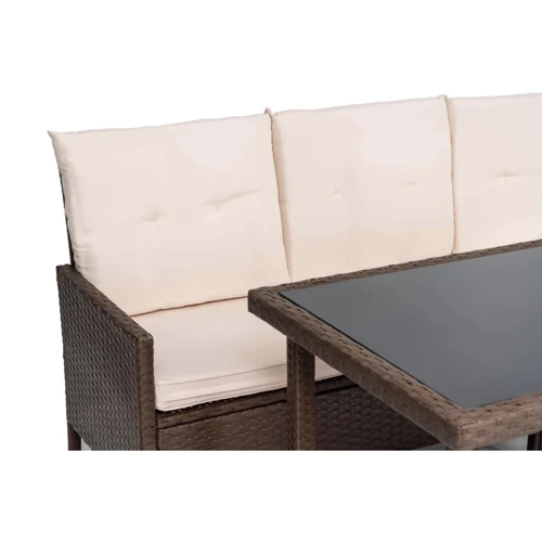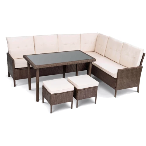 Мечтаете посетить Венецию, но пока не можете? Не беда, очаровательная садовая мебель DiVolio VENICE из ротанга станет прекрасным воплощением вашей потаенной мечты. Изящный дизайн, четкие линии, универсальный цвет, приятные на ощупь поверхности, прочные материалы, искусное плетение из ротанга – в эту мебель невозможно не влюбиться с первого взгляда. Изысканный набор покоряет своей невероятной эстетикой, прекрасным исполнением и надежной практичностью. С ним даже самый обычный вечер превратится в увлекательное путешествие по Италии, а шумные посиделки - в элегантный отдых с европейским привкусом. Купить садовую мебель DiVolio VENICE- означает не только подарить себе и своим близким чудесную возможность ощутить дух культового города, но и стать обладателем по-настоящему функциональной красоты. Комплект является отличным продуктом итальянской марки DiVolio, чье имя само по себе олицетворяет гарантию качества по весьма приятной цене. Собираясь заказать садовую мебель из ротанга от DiVolio, будьте уверенны в ее надежности и долговечности, ведь фирма-производитель предоставляет гарантию на целых 24 месяца. Комплект DiVolio VENICE состоит из роскошного углового дивана, двух мягких пуфов, большого стола со стеклянным верхом, подушек со съемными чехлами и креплений для самостоятельной сборки.
