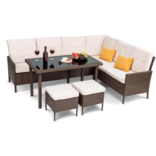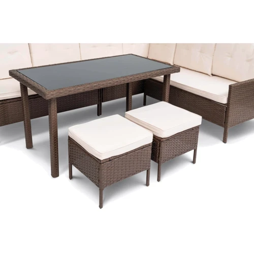 # Качественные материалы Каркас изготовлен из прочной стали, которая обеспечивает надежную защиту от преждевременной коррозии и гарантирует всему набору длительный срок службы. Верхнее покрытие, сделанное из добротного ротанга, отлично противостоит ультрафиолету, влаге, перепадам температур и любым другим погодным условиям.