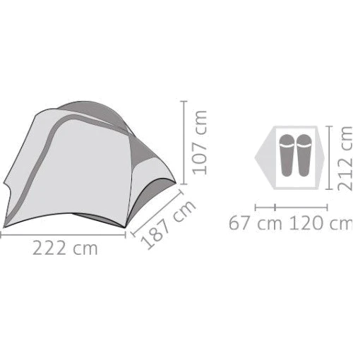 Два вентиляционных отверстия по бокам обеспечивают хороший поток воздуха и эффективно снижают образование конденсата внутри палатки. Специальная серебристая верхняя часть тента отражает солнечные лучи. Палатка достаточно большая для двух человек с небольшим количеством снаряжения или очень комфортная одноместная палатка для длительных приключений.