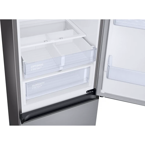 Холодильник с нижней морозильной камерой Samsung снижает температуру по технологии No Frost, поэтому выгодно отличается от моделей без такой системы. No Frost обеспечивает вентилируемое охлаждение, благодаря которому регулируется уровень влажности, отсутствует конденсат, иней, наледь, сторонние запахи и существенно продлевается срок службы холодильника.