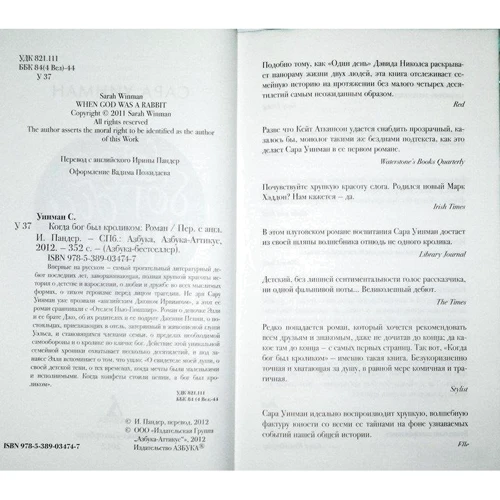 Впервые на русском — самый трогательный литературный дебют последних лет, завораживающая, полная хрупкой красоты история о детстве и взрослении, о любви и дружбе во всех мыслимых формах, о тихом героизме перед лицом трагедии. Не зря Сару Уинман уже прозвали «английским Джоном Ирвингом», а этот ее роман сравнивали с «Отелем Нью-Гэмпшир». Роман о девочке Элли и ее брате Джо, об их родителях и ее подруге Дженни Пенни, о постояльцах, приезжающих в отель, затерянный в живописной глуши Уэльса, и становящихся членами семьи, о пределах необходимой самообороны и о кролике по кличке бог. Действие этой уникальной семейной хроники охватывает несколько десятилетий, и под занавес Элли вспоминает о том, что ушло: «О свидетеле моей души, о своей детской тени, о тех временах, когда мечты были маленькими и исполнимыми. Когда конфеты стоили пенни, а бог был кроликом».