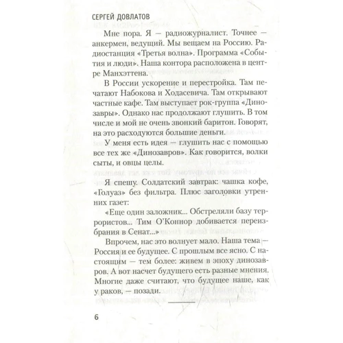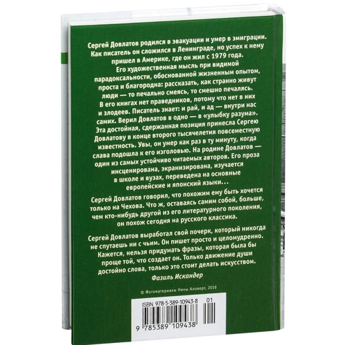 Сергей Довлатов родился в эвакуации и умер в эмиграции. Как писатель он сложился в Ленинграде, но успех к нему пришел в Америке, где он жил с 1979 года. Его художественная мысль при видимой парадоксальности, обоснованной жизненным опытом, проста и благородна: рассказать, как странно живут люди — то печально смеясь, то смешно печалясь. В его книгах нет праведников, потому что нет в них и злодеев. Писатель знает: и рай, и ад — внутри нас самих. Верил Довлатов в одно — в «улыбку разума».