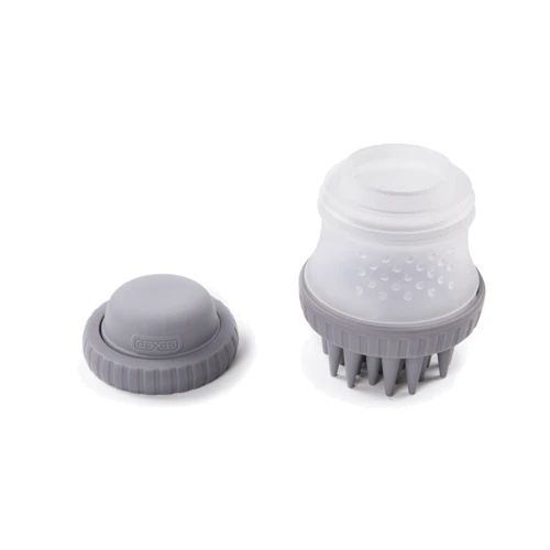 Щетка обеспечивает быструю и тщательную очистку, в то время как силиконовые щетинки легко достигают кожи и обеспечивают расслабляющий массаж. Резервуар для шампуня, присоединенный к щетке, активируется во время купания. Для дополнительной порции шампуня необходимо нажать мягкую крышку на верхушке щетки. Не ускользает из рук.