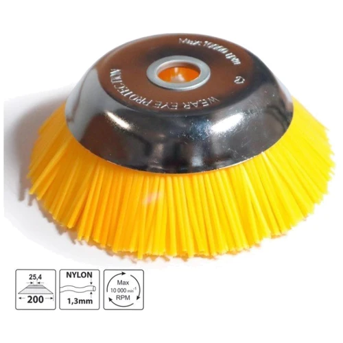 Диаметр насадки составляет 200 мм. Диаметр посадочного отверстия для крепления щетки составляет 25.4 мм, поэтому она подойдет ко всем стандартным триммерам и мотокосам. Щетка легко крепится и также легко снимается.