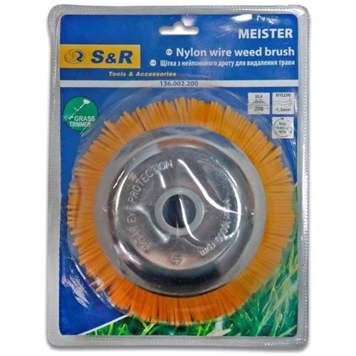 Щетка S&R Meister предназначена для эффективного удаления проросшей травы и другого мусора из тротуаров или асфальтированных участков. Ворс изготовлен из нейлона. Щетку удобно использовать в местах стыков бордюр или кирпичной кладки.