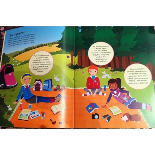 Помоги трем подружкам найти все для школы, загляни на репетицию спектакля, сходи в музей и на соревнования по легкой атлетике.