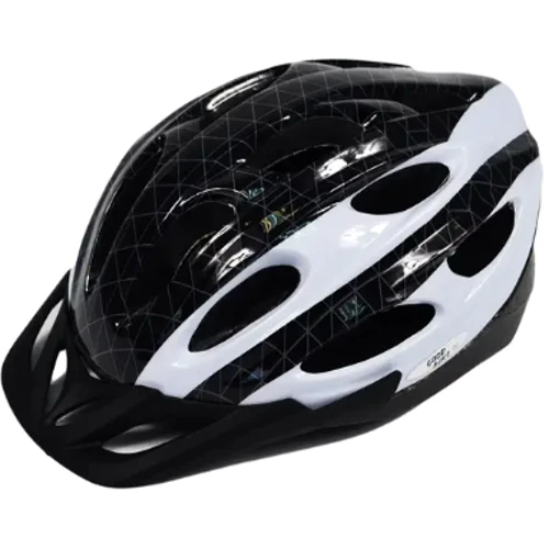 Шлем взрослый защитный изготовлен по технологии InMold с надежной защитой и съемным козырьком. Особенность конструкции заключается в заниженной затылочной части. Ремешки, обеспечивающие крепление застежкой-фастексом на подбородке, дают возможность регулировки в широком диапазоне. с регулировкой размера по объему. Имеет 11 отверстий для вентиляции, помогающих держать комфортную температуру под шлемом. Предназначен для защиты головы от ударов при падении и ДТП. Такие шлемы легкие и обеспечивают хорошую защиту для спортсменов и любителей велосипедной езды. Антибактериальные прокладки хорошо впитывают влагу и легко снимаются для стирки.