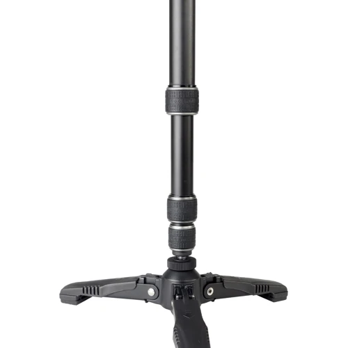 Tri-Feet. Занимая не многим больше места для установки, чем традиционный монопод, система опоры Tri-Feet делает монопод устойчивым и универсальным, позволяя более качественно проводить не только фото, но и видеосъемку. Три ножки находятся сложенным в транспортном положении, но моментально раскладываются при необходимости съемки. Благодаря использованию шарового шарнира в основании, монопод можно плавно наклонять в любую сторону, а также вращать вокруг своей оси на 360°, делая возможной панорамную съемку даже без использования штативной головки. Если необходимо получить максимальную устойчивость, - гаечный фиксатор блокирует движение шарового шарнира.