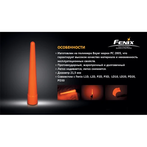 Сигнальная насадка красного цвета для фонарей от компании Fenix. Жезл применяется для подачи сигналов в сумерках и в темное время суток.